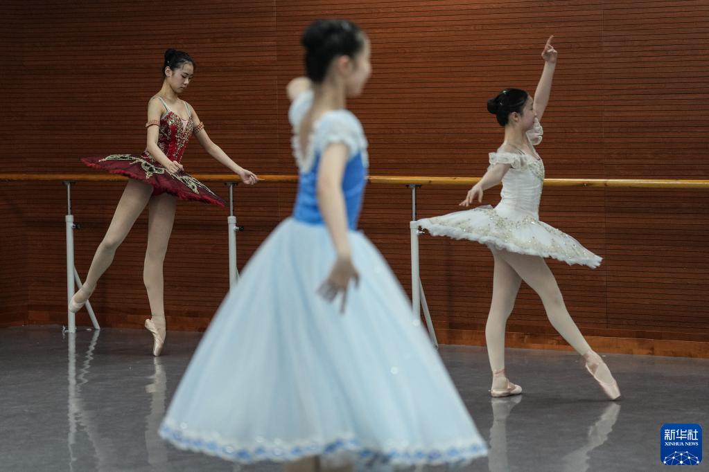 5月30日,遼寧芭蕾舞團附屬芭蕾舞蹈學(xué)校五年級的學(xué)生在上芭蕾課。