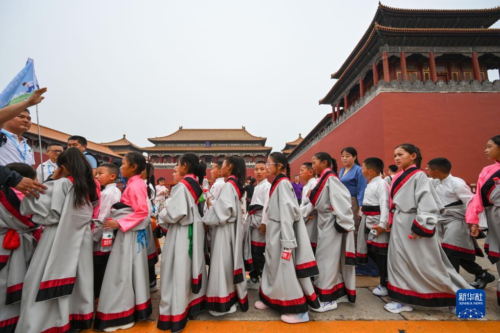 5月31日,來(lái)自玉樹(shù)州的孩子們在北京故宮博物院外排隊等候進(jìn)入參觀(guān)。