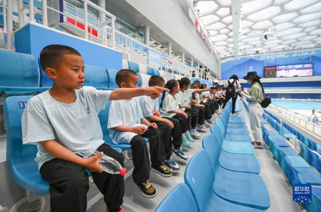 5月31日,來(lái)自玉樹(shù)州的孩子們在國家游泳中心“水立方”內參觀(guān)。