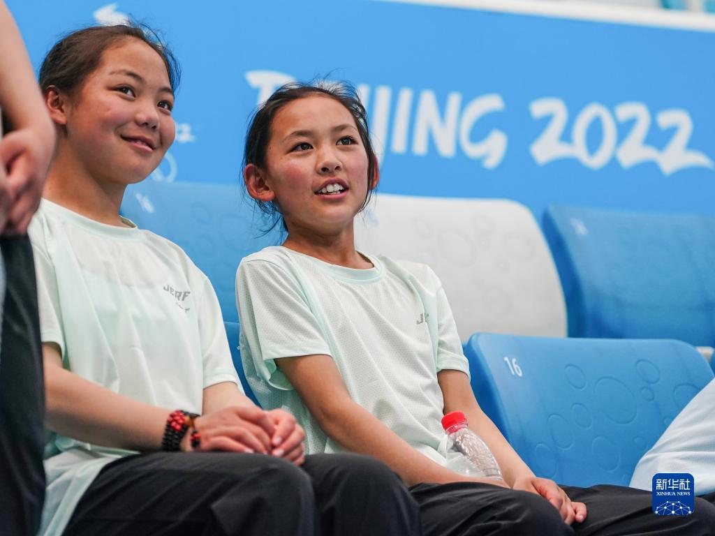 5月31日,來(lái)自玉樹(shù)州的孩子在國家游泳中心“水立方”內參觀(guān)。