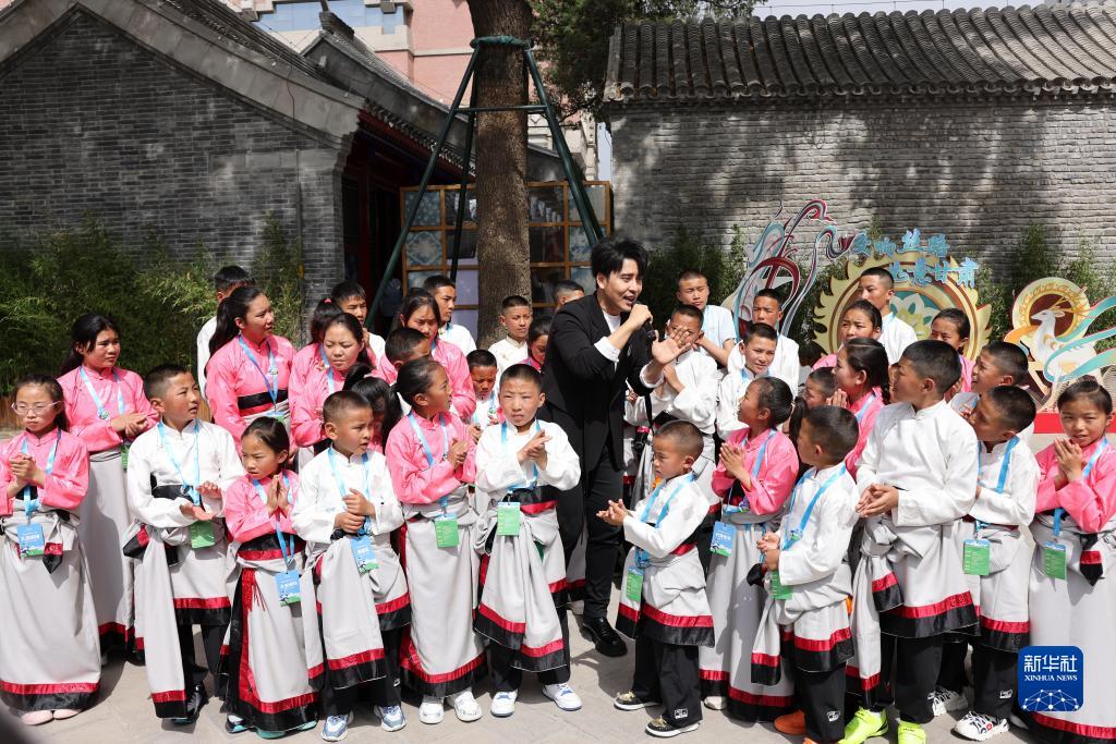 6月1日,來(lái)自玉樹(shù)州的孩子們在北京蒙藏學(xué)校舊址和中央民族歌舞團青年歌唱家扎西頓珠互動(dòng)。
