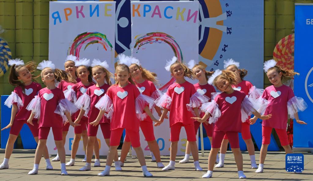 6月1日,孩子們在白俄羅斯首都明斯克表演節目,慶?!傲弧眹H兒童節。