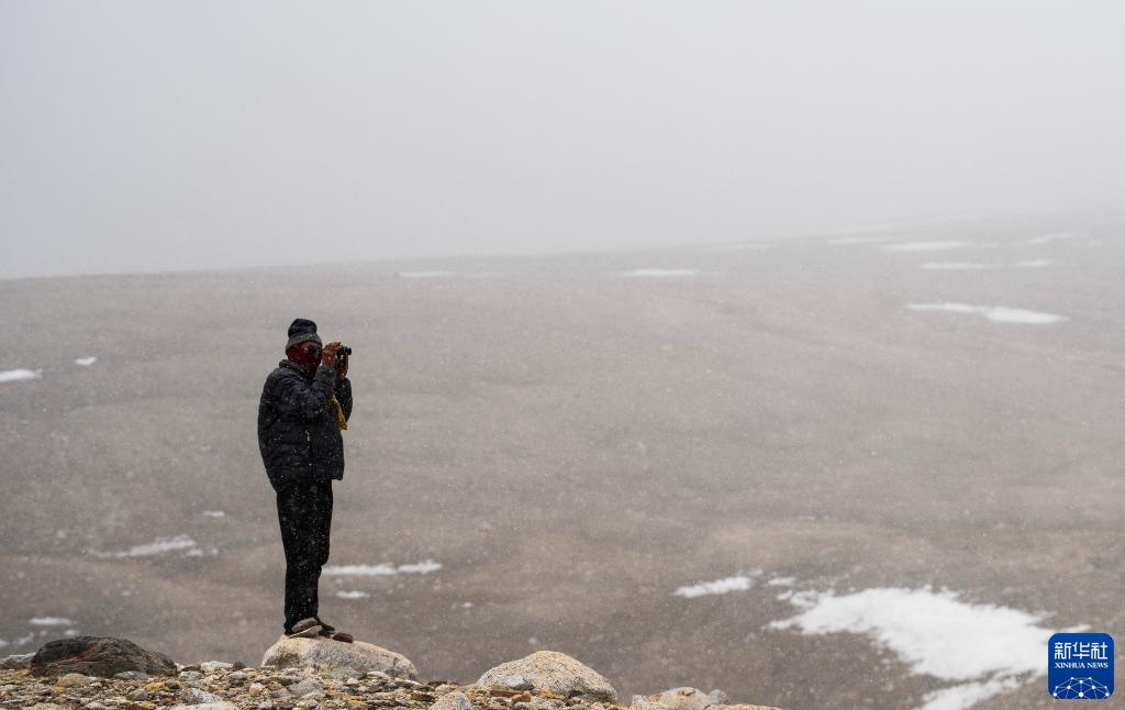 5月31日,乃乃老人用望遠鏡觀(guān)察遠處的杰瑪央宗冰川。新華社記者 費茂華 攝