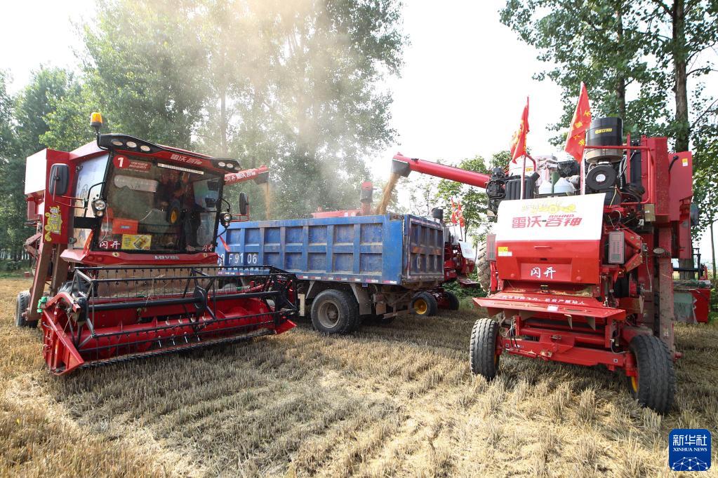 6月1日,在河南省駐馬店市正陽(yáng)縣蘭青鄉,農機手操作聯(lián)合收割機收獲小麥。