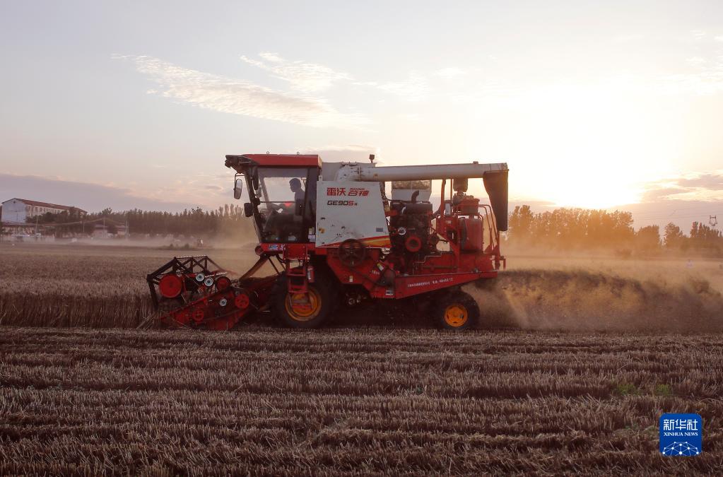 6月1日傍晚,河南省開(kāi)封市尉氏縣門(mén)樓任鄉馬家村的“三夏服務(wù)隊”在為群眾搶收小麥。
