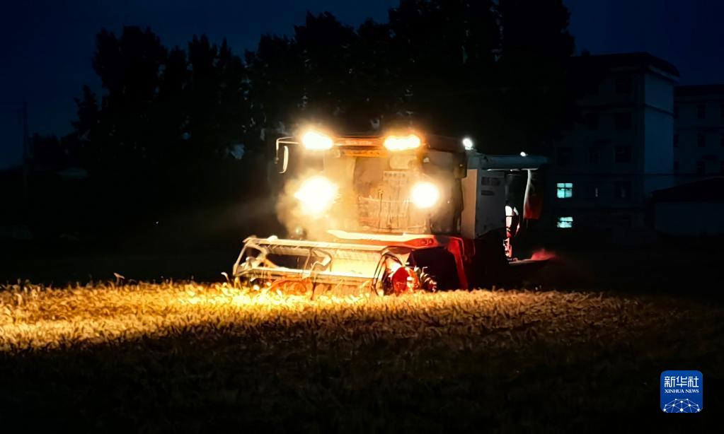 6月1日晚,河南省開(kāi)封市尉氏縣門(mén)樓任鄉馬家村的三夏服務(wù)隊在為群眾搶收小麥。