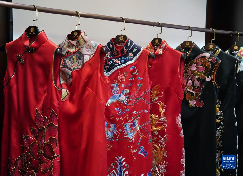 這是5月30日在上海市“龍鳳旗袍”門(mén)店拍攝的旗袍。