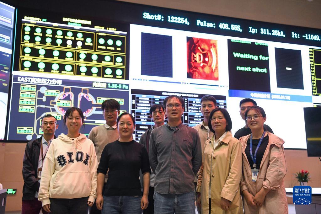 2023年4月12日,實(shí)驗成功后,部分科研人員在全超導托卡馬克核聚變實(shí)驗裝置(EAST)控制大廳留影。4月12日21時(shí),中國有“人造太陽(yáng)”之稱(chēng)的全超導托卡馬克核聚變實(shí)驗裝置(EAST)創(chuàng )造新的世界紀錄,成功實(shí)現穩態(tài)高約束模式等離子體運行403秒。