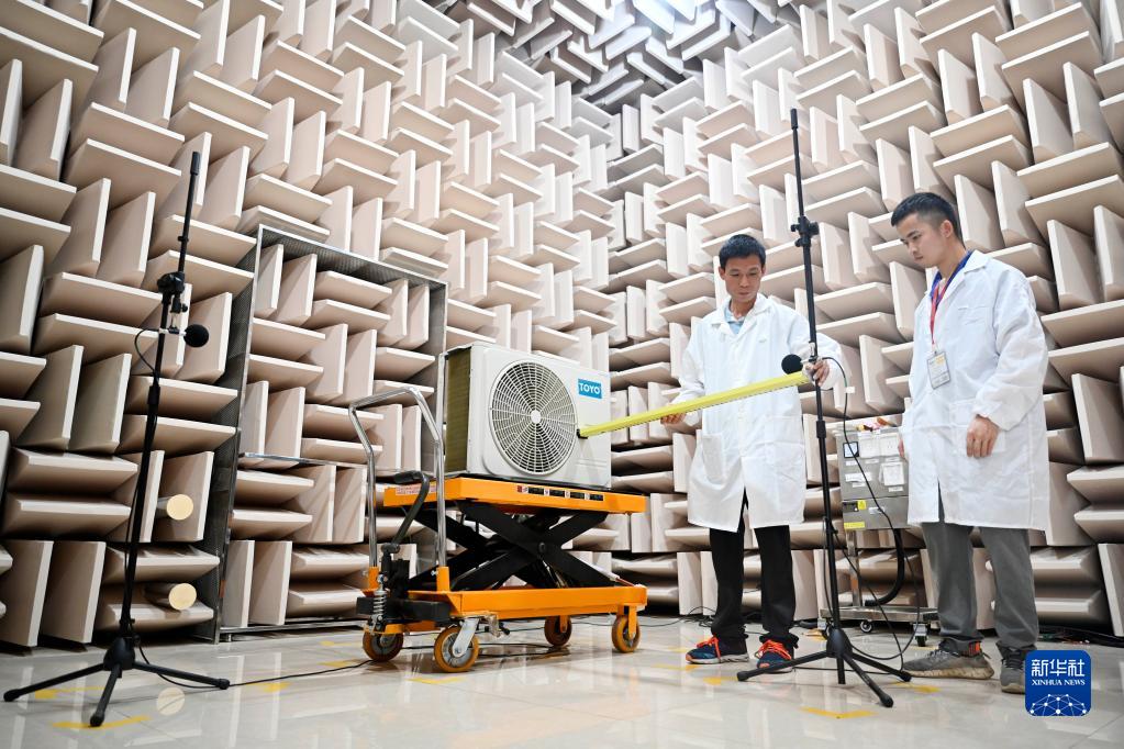 6月2日,技術(shù)人員在柳江區一家空調企業(yè)的實(shí)驗室里對即將上市的產(chǎn)品開(kāi)展噪音測試。