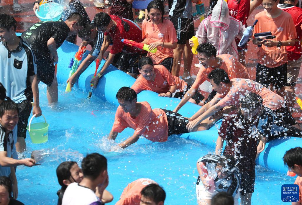 6月2日,學(xué)生們享受潑水活動(dòng)帶來(lái)的快樂(lè )。