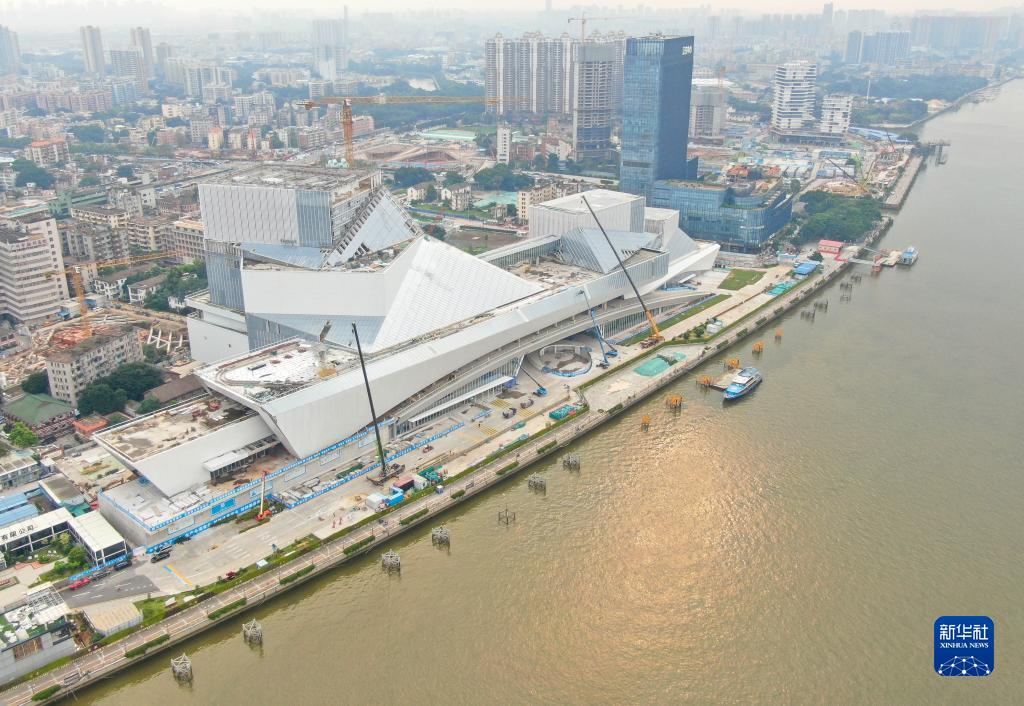 白鵝潭大灣區藝術(shù)中心宛如一艘“文化巨輪”揚帆珠江(6月2日攝,無(wú)人機照片)。