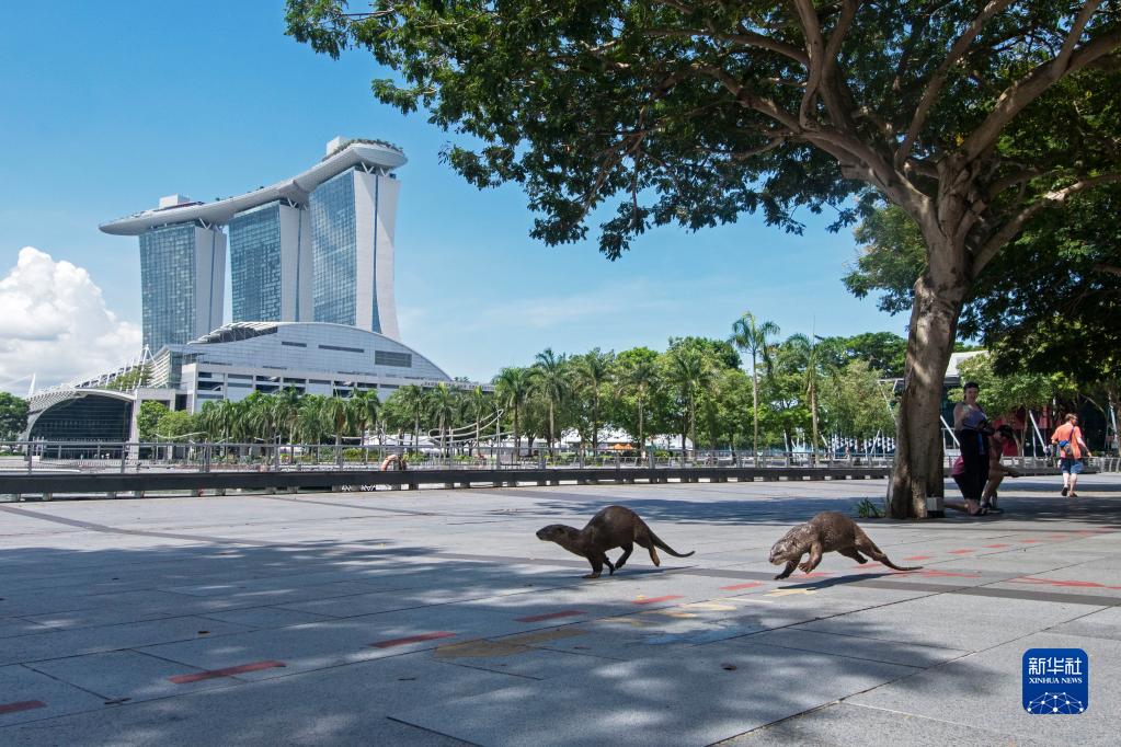 5月2日,一群水獺在新加坡濱海灣一帶的鬧市中出沒(méi)。