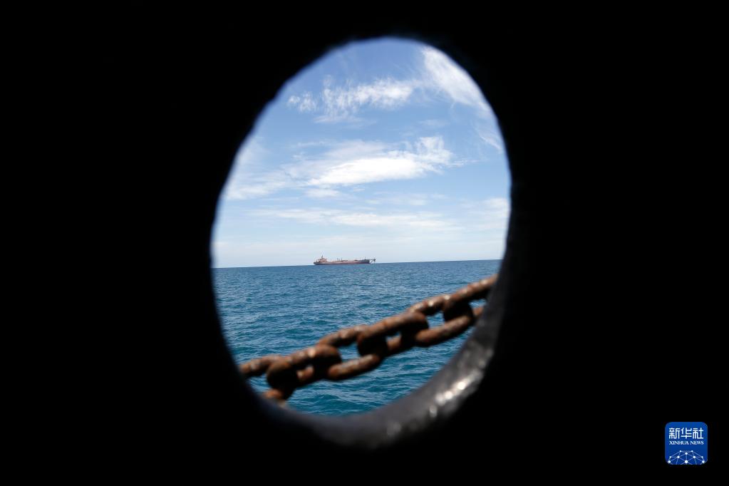 5月30日,“薩菲爾”號油輪停泊在也門(mén)紅海港口荷臺達附近海域。