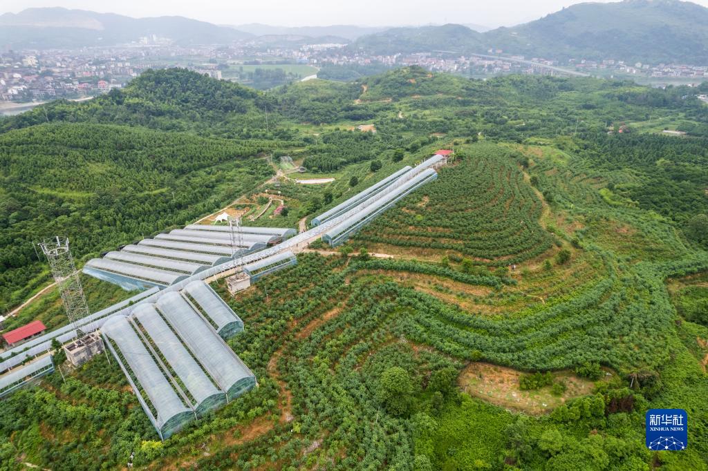 這是6月3日在冷水江市金竹山鎮新田村拍攝的藍莓基地(無(wú)人機照片)。