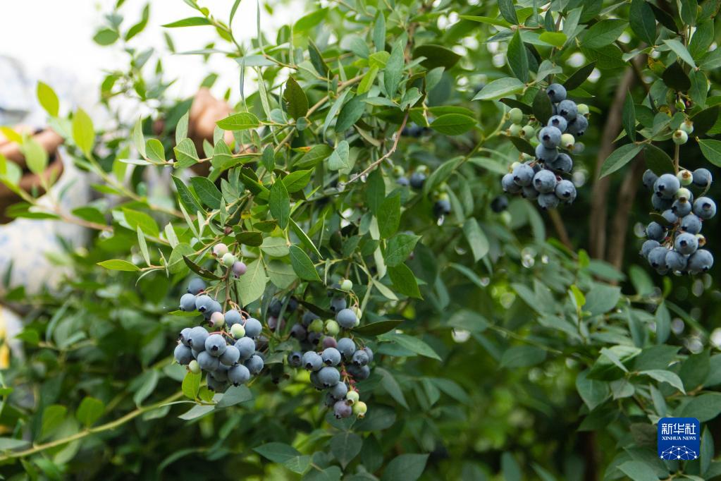這是6月3日在冷水江市金竹山鎮新田村藍莓基地拍攝的藍莓。