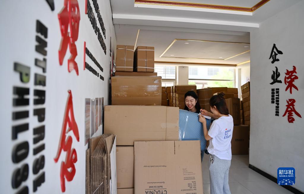 6月3日,白溝新城一家箱包出口企業(yè)的工作人員在盤(pán)點(diǎn)即將發(fā)貨的產(chǎn)品。