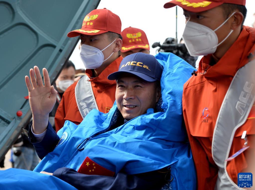 6月4日,神舟十五號載人飛船返回艙在東風(fēng)著(zhù)陸場(chǎng)成功著(zhù)陸,神舟十五號載人飛行任務(wù)取得圓滿(mǎn)成功。這是航天員費俊龍揮手致意。新華社記者 任軍川 攝