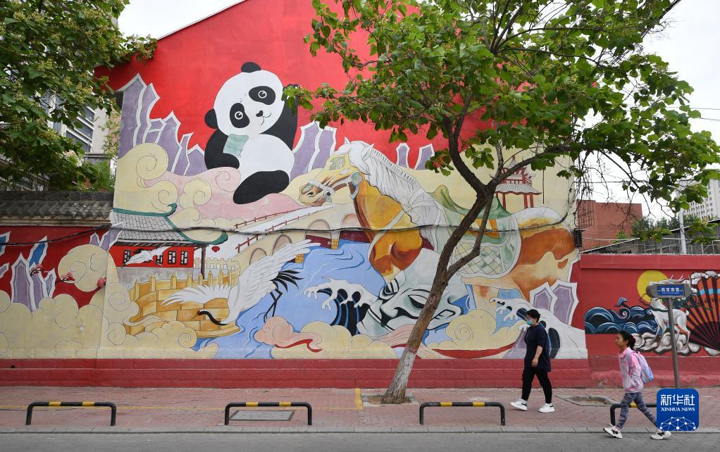 6月4日,市民經(jīng)過(guò)銀川市興慶區教育巷特色墻繪。