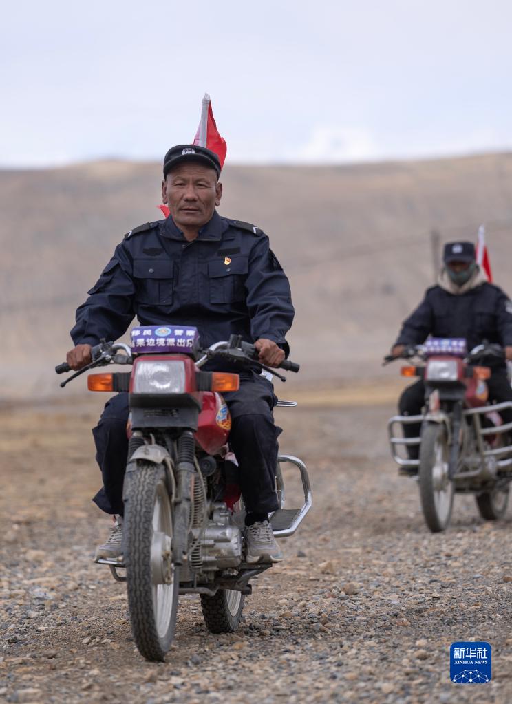 車(chē)輪滾滾,黃沙漫漫,一隊摩托車(chē)風(fēng)馳電掣般駛來(lái)……這里是平均海拔超過(guò)5000米的西藏日喀則市薩嘎縣昌果鄉,雖然已是初夏時(shí)節,但依然寒風(fēng)刺骨。50歲的昌果護邊聯(lián)防隊隊長(cháng)石角帶領(lǐng)18名隊員,騎著(zhù)摩托車(chē)在邊境線(xiàn)巡邏。