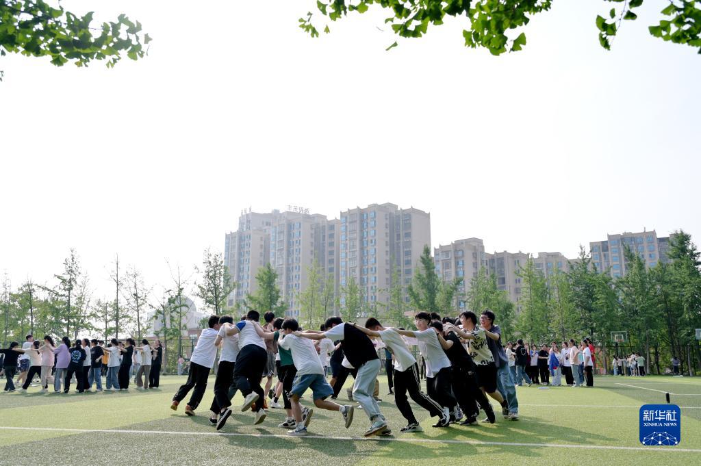 6月4日,在湖南省婁底市雙峰縣曾國藩高級實(shí)驗中學(xué),高三學(xué)生在做趣味游戲。