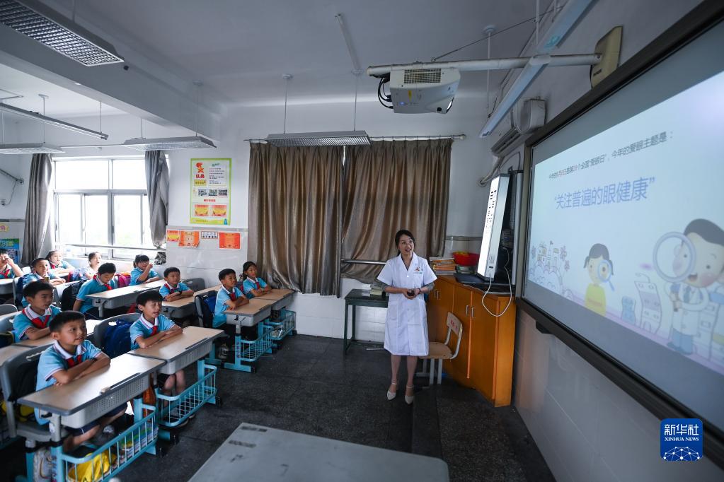 6月5日,東林鎮衛生院的醫生給小學(xué)生們普及愛(ài)眼知識。