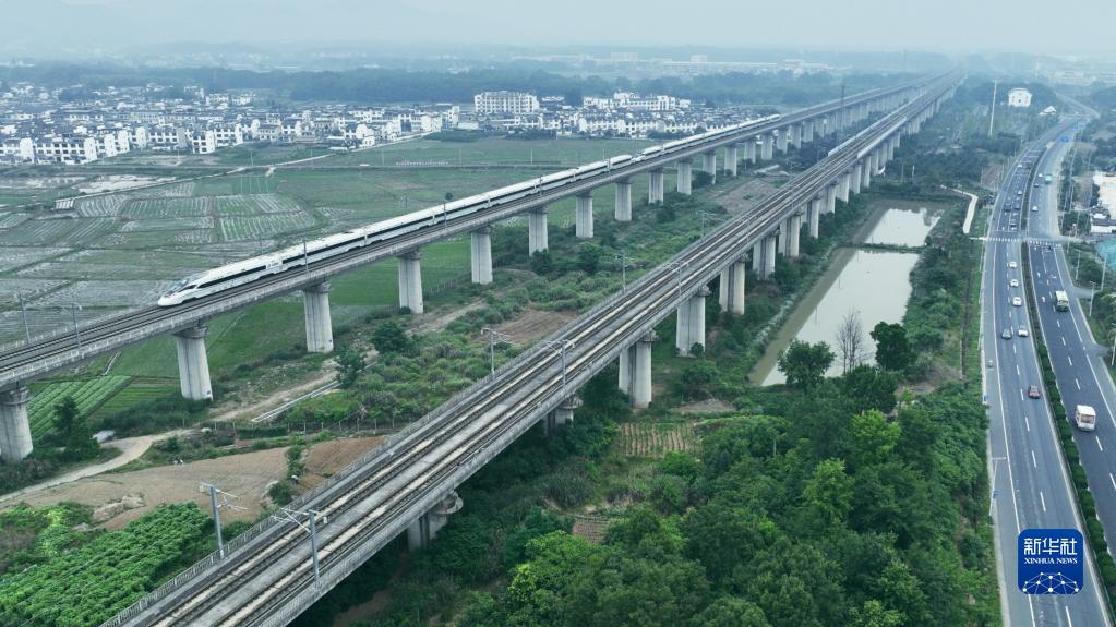 6月4日,從安徽省黃山市開(kāi)往浙江省杭州市的列車(chē)從黃山北站駛出。