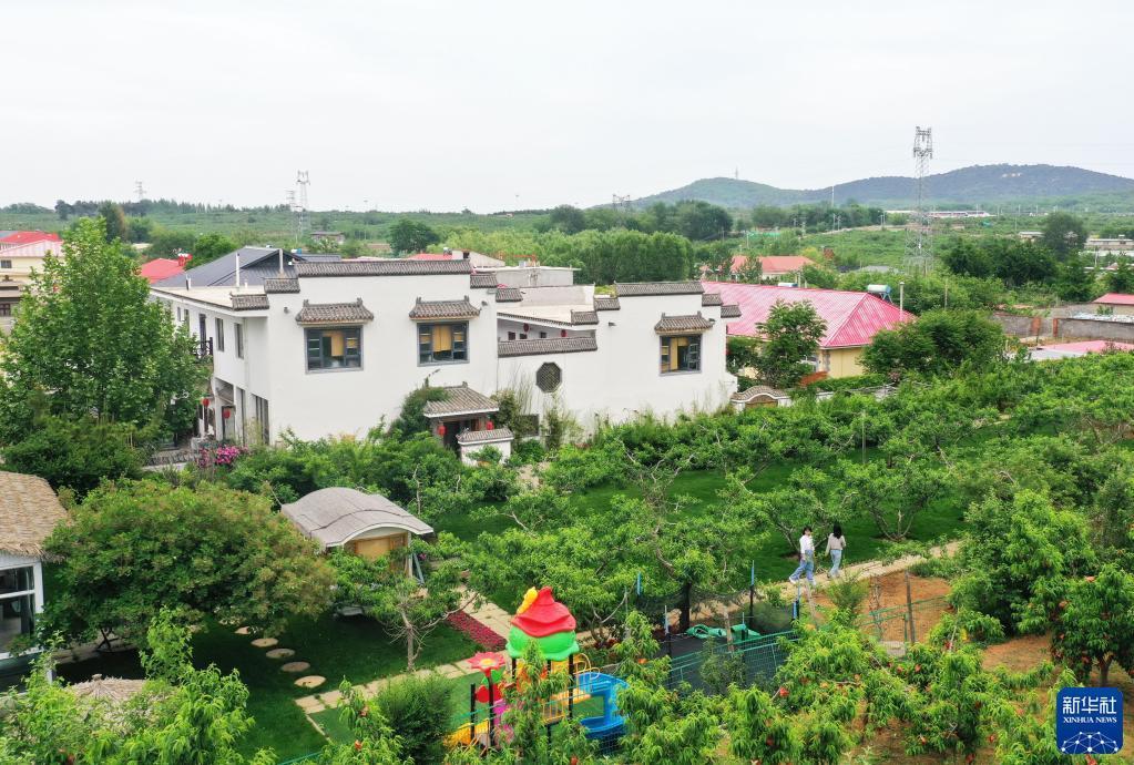 6月5日,游客在秦皇島市北戴河區費石莊村一家精品民宿的果園參觀(guān)(無(wú)人機照片)。