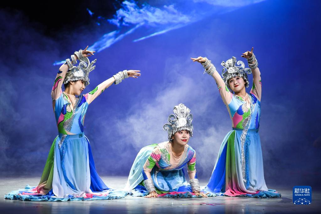 6月5日,演員在貴陽(yáng)大劇院的《多彩貴州風(fēng)》演出中表演節目《水姑娘》。
