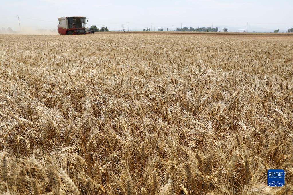6月6日,河南省焦作市溫縣黃河街道張王莊村村民駕駛收割機在田間收獲小麥。