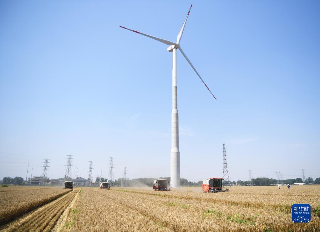6月6日,在河南省安陽(yáng)市滑縣萬(wàn)古鎮,收割機在搶收種子田的小麥。
