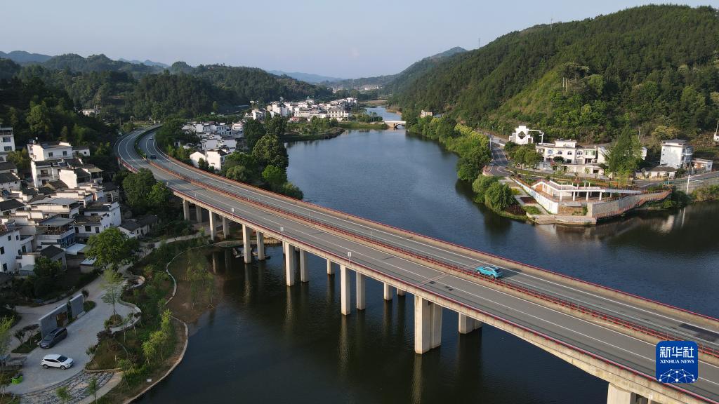 這是6月1日拍攝的安徽省黃山市歙縣新安江風(fēng)景(無(wú)人機照片)。