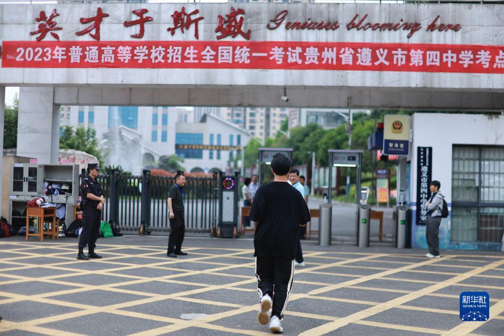 6月7日,在貴州省遵義市遵義四中考點(diǎn)外,一名考生跑步進(jìn)入考場(chǎng)。