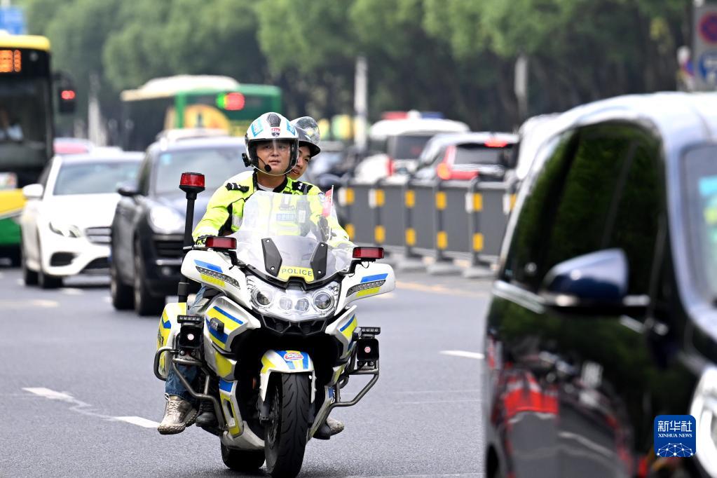 6月7日,在安徽省合肥市第一中學(xué)考點(diǎn),交警護送考生抵達考點(diǎn)。