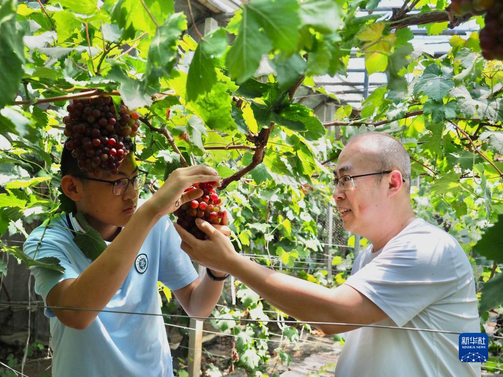 初夏時(shí)分,山東省濱州市濱城區楊柳雪鎮西辛莊村果蔬大棚內的葡萄、甜瓜等水果陸續成熟,吸引不少游客前來(lái)采摘。