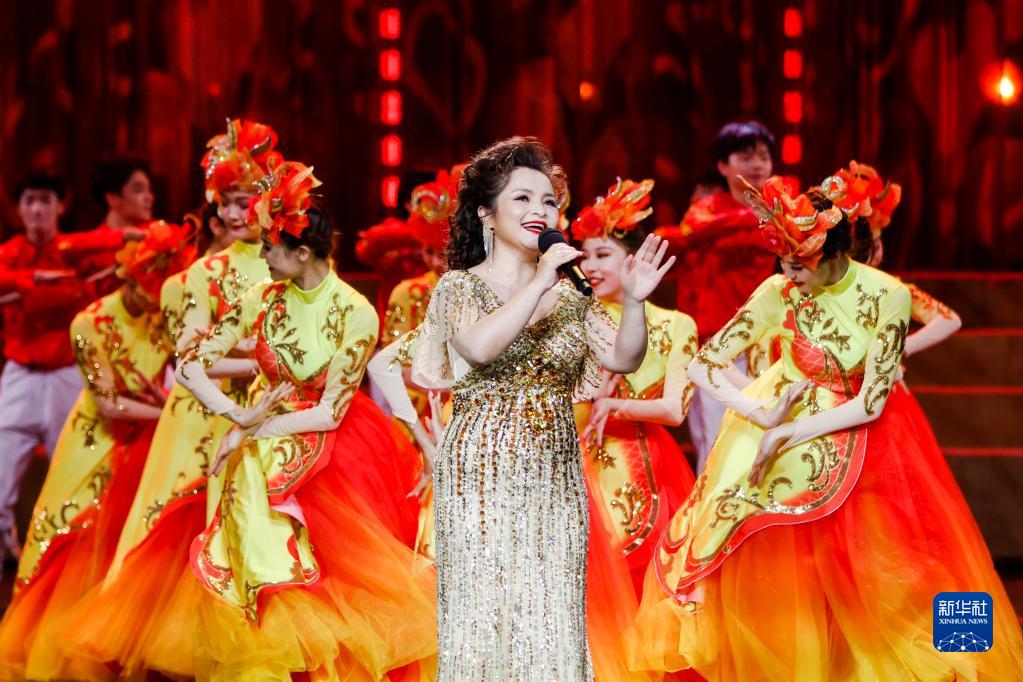 6月6日,在“新歌唱新疆”優(yōu)秀原創(chuàng )歌曲演唱會(huì )上,吳碧霞在演唱歌曲《我們是兄弟姐妹》。