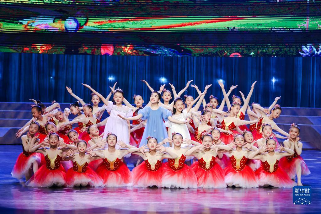 6月6日,在“新歌唱新疆”優(yōu)秀原創(chuàng )歌曲演唱會(huì )上,小朋友們在表演歌舞《向快樂(lè )出發(fā)》。