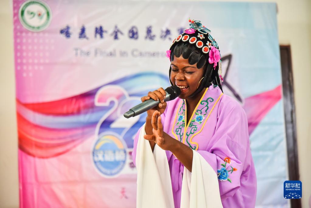 6月4日,在喀麥隆首都雅溫得,選手在“漢語(yǔ)橋”世界大學(xué)生中文比賽喀麥隆賽區決賽上表演。