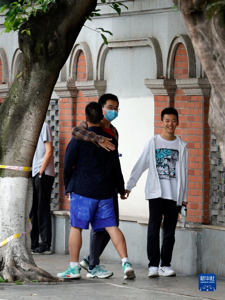 6月7日,在四川省成都市第七中學(xué)林蔭校區考點(diǎn)外,學(xué)生互相加油鼓勁。