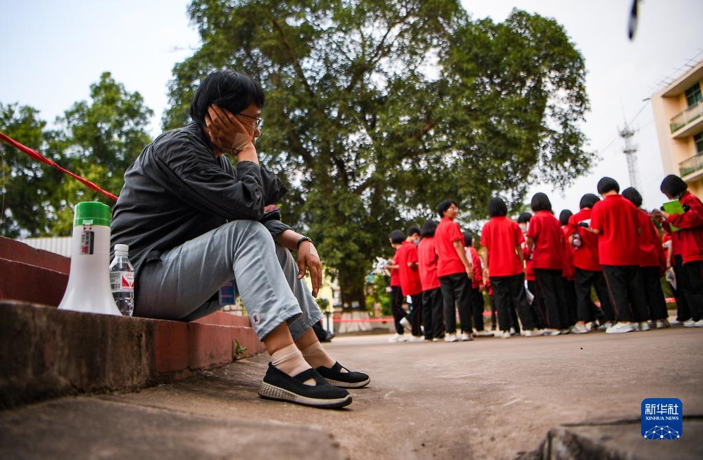 6月7日,張桂梅在考場(chǎng)外休息。