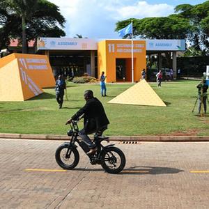 在肯尼亞首都內羅畢進(jìn)行的為期5天的第二屆聯(lián)合國人居大會(huì )期間,一場(chǎng)低碳和電動(dòng)交通載具展在聯(lián)合國內羅畢辦事處舉行,呼應著(zhù)本屆大會(huì )重點(diǎn)關(guān)注的可持續的城市未來(lái)議題,通過(guò)綠色出行、降碳減排,緩解城市污染和氣候變化的影響。