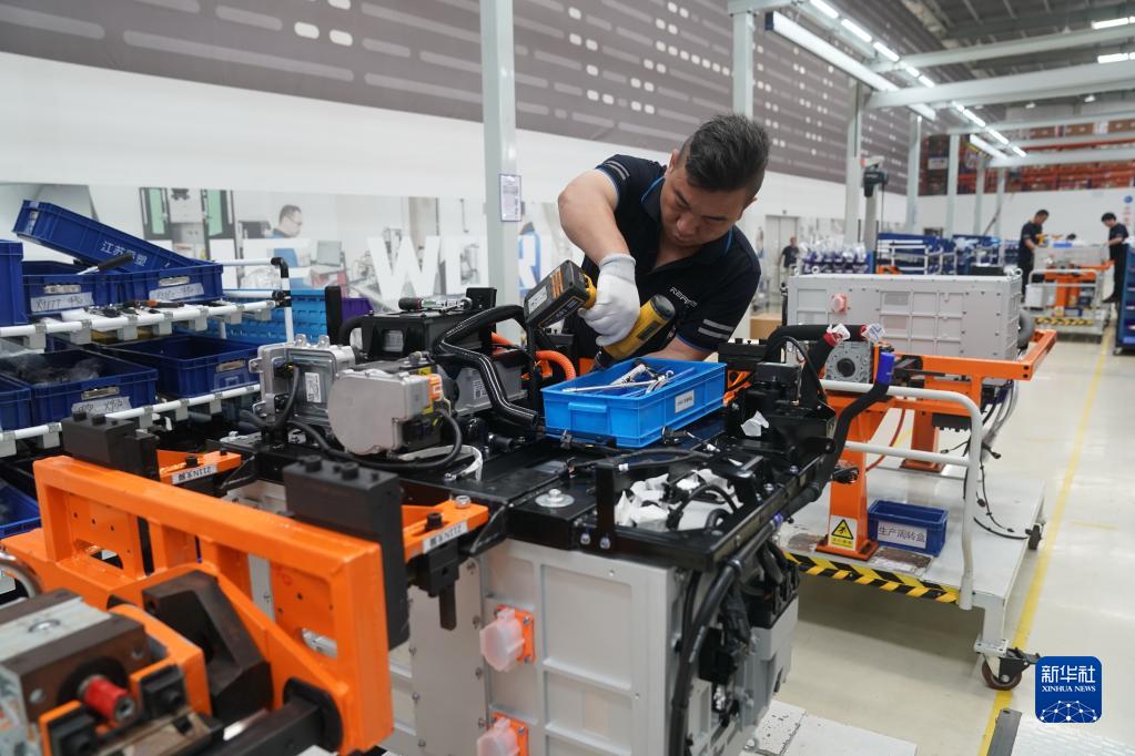 6月7日,在位于常熟的江蘇重塑能源科技有限公司,員工在生產(chǎn)線(xiàn)上組裝氫燃料電池系統。