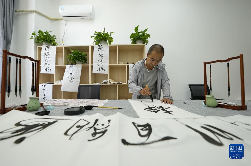 6月8日,一位老人在河北省灤州市灤城街道東南都會(huì )社區一家社區養老中心內練習書(shū)法。