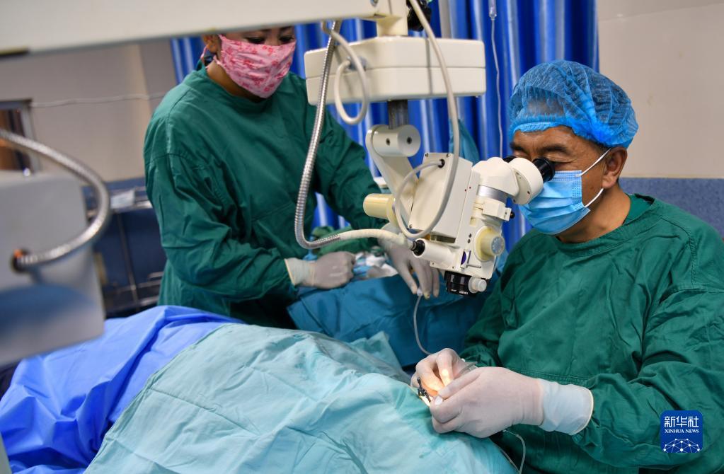 6月8日,光明眼科康復診療院的醫生在為一位農牧民患者做白內障手術(shù)。