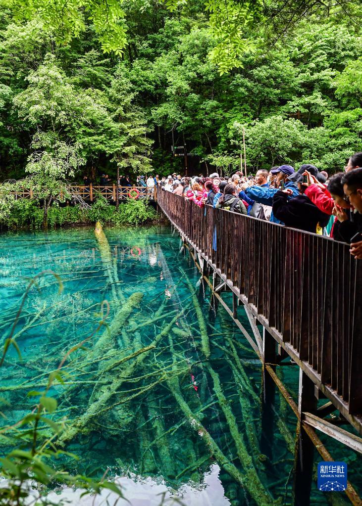 進(jìn)入6月,世界自然遺產(chǎn)九寨溝景區山巒疊翠,飛瀑爭喧。截至6月8日,九寨溝景區2023年游客接待量超120萬(wàn)人次。