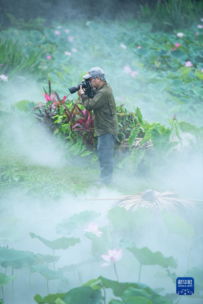 6月9日,游人在澳門(mén)龍環(huán)葡韻拍攝荷花。