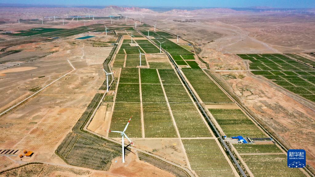 這是位于寧夏青銅峽市的西鴿酒莊釀酒葡萄種植基地(6月7日攝,無(wú)人機照片)。