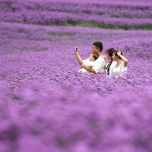 夏日里,貴州省貴陽(yáng)市花溪區高坡苗族鄉石門(mén)村上百畝馬鞭草爭相盛開(kāi),形成一片紫色花海。