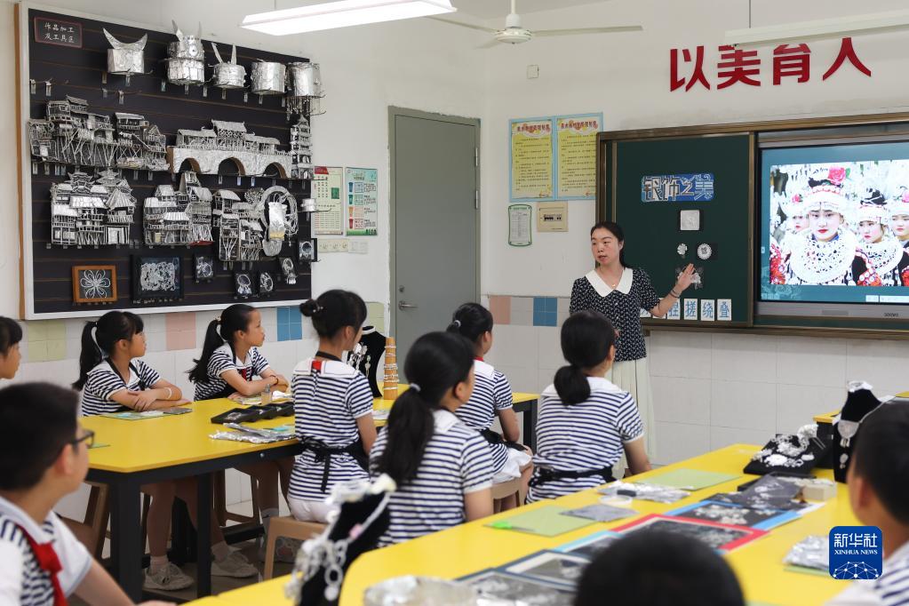 這是6月9日在湖南省長(cháng)沙市朝陽(yáng)小學(xué)拍攝的特色美育課堂。