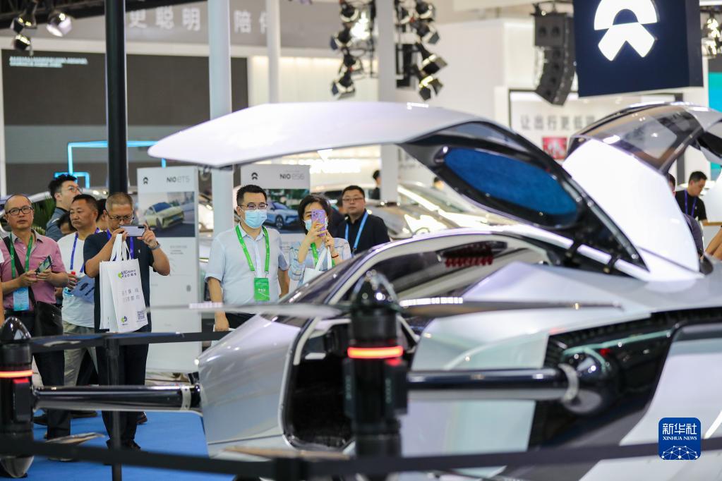 6月9日,參觀(guān)者在展覽會(huì )上了解國產(chǎn)飛行汽車(chē)。
