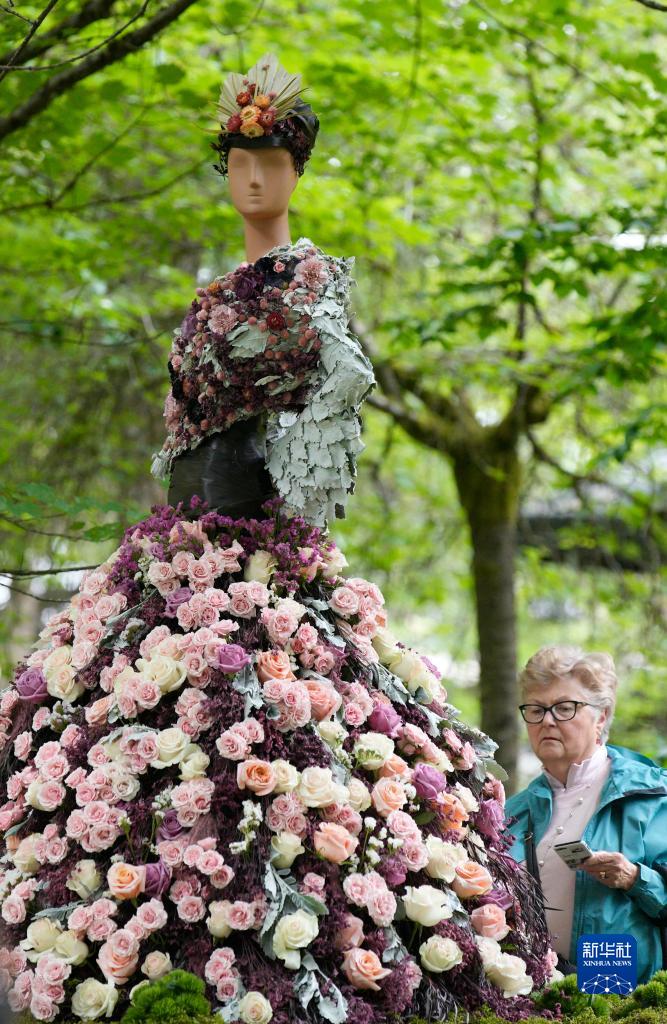 這是6月9日在加拿大溫哥華舉辦的“花卉城市之旅”花卉展上拍攝的花卉裝置藝術(shù)作品。